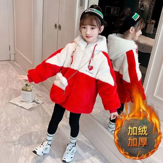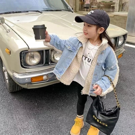 معاطف جديدة للبنات من القطيفة السميكة ملابس أطفال متعددة الاستخدامات فراء قطني عصري