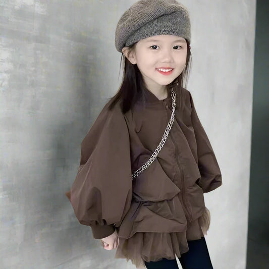 معطف أطفال شبكي مكون من قطعتين مزيف