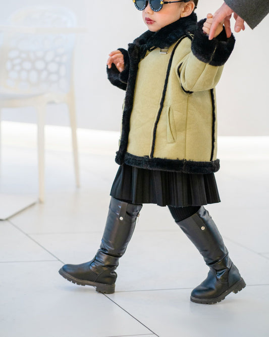 جاكيت جلدي من الفرو للبنات الصغار من عمر 1 إلى 16 سنة