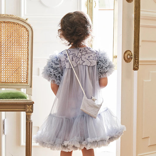 فستان رمادي أزرق للأطفال البنات الصغار